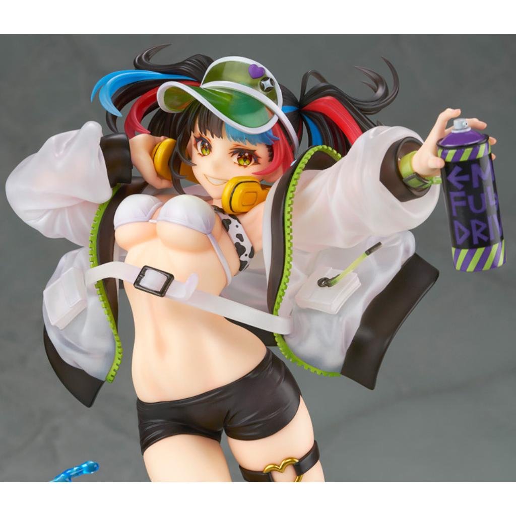 Berserker/Sei Shonagon from "Fate/Grand Order" appears in Alter's figure lineup wearing her First Ascension swimsuit! She's seen riding a skateboard with a spray paint can in hand; the motion of her puffy jacket and twin tails, along with the colorful clear splash effects, give the figure a dynamic feel. You'll love her mischievous smile, and all her accessories, such as her headphones, shoes, and skateboard, have been carefully sculpted down to the smallest detail. Display her anywhere you'd like to see some summertime action -- order her for your own collection today!