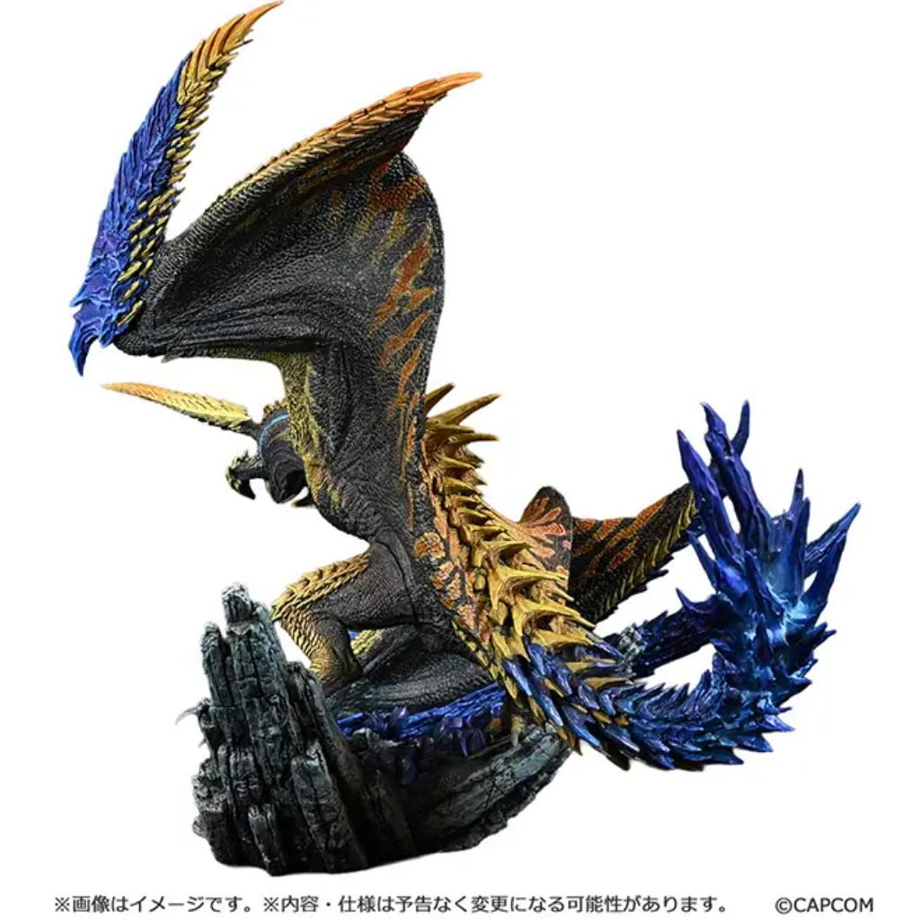 Rey Dau, the apex predator of the Windward Plains in "Monster Hunter Wilds," is joining the "Figure Builder Creators Model" lineup from Capcom! Its imposing form, piercing the plateau like a lightning strike, is accurately recreated in this beautiful figure; every scale, claw, horn, and fang is painstakingly sculpted. The scales and the base change appearance depending on the angle you view them from, just like in the game, and the wings and tail, clad in Blue Thunder Crystal, feature different textures and sharp, bold shapes. This figure will be the center of attention wherever you choose to display it -- order it for your own collection today!