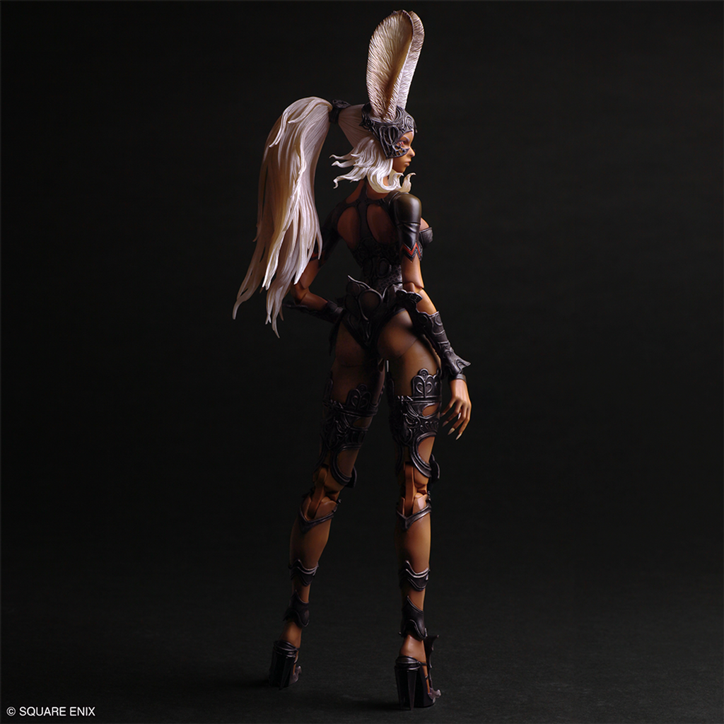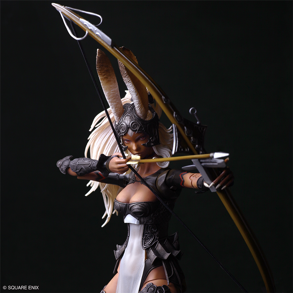 Capturing the mystical appearance of the Viera race—their distinctive long ears, dark skin, luscious white hair, and slender physique—the figure conveys Fran’s strong will and determination. Close attention has also been paid to the finer details, including the texture and patterns of the helmet and costume.