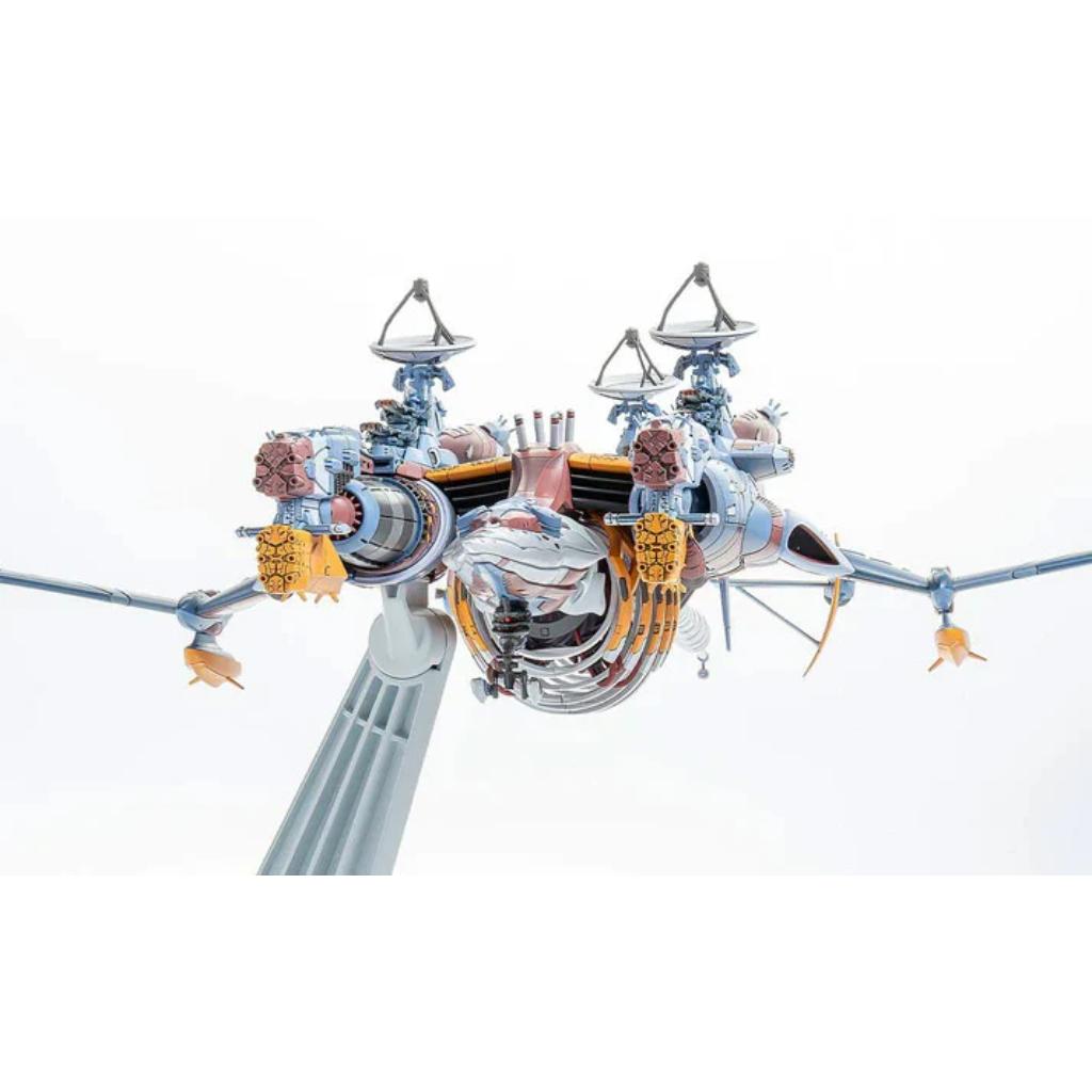 The various parts of the mecha have been separated into nine different colored runners, making it easy to recreate the battleship with a simple assembly. The main armament and antennas are articulated. The rib-like white structures and complicated piping allow for a clear view of the main engine contained within.