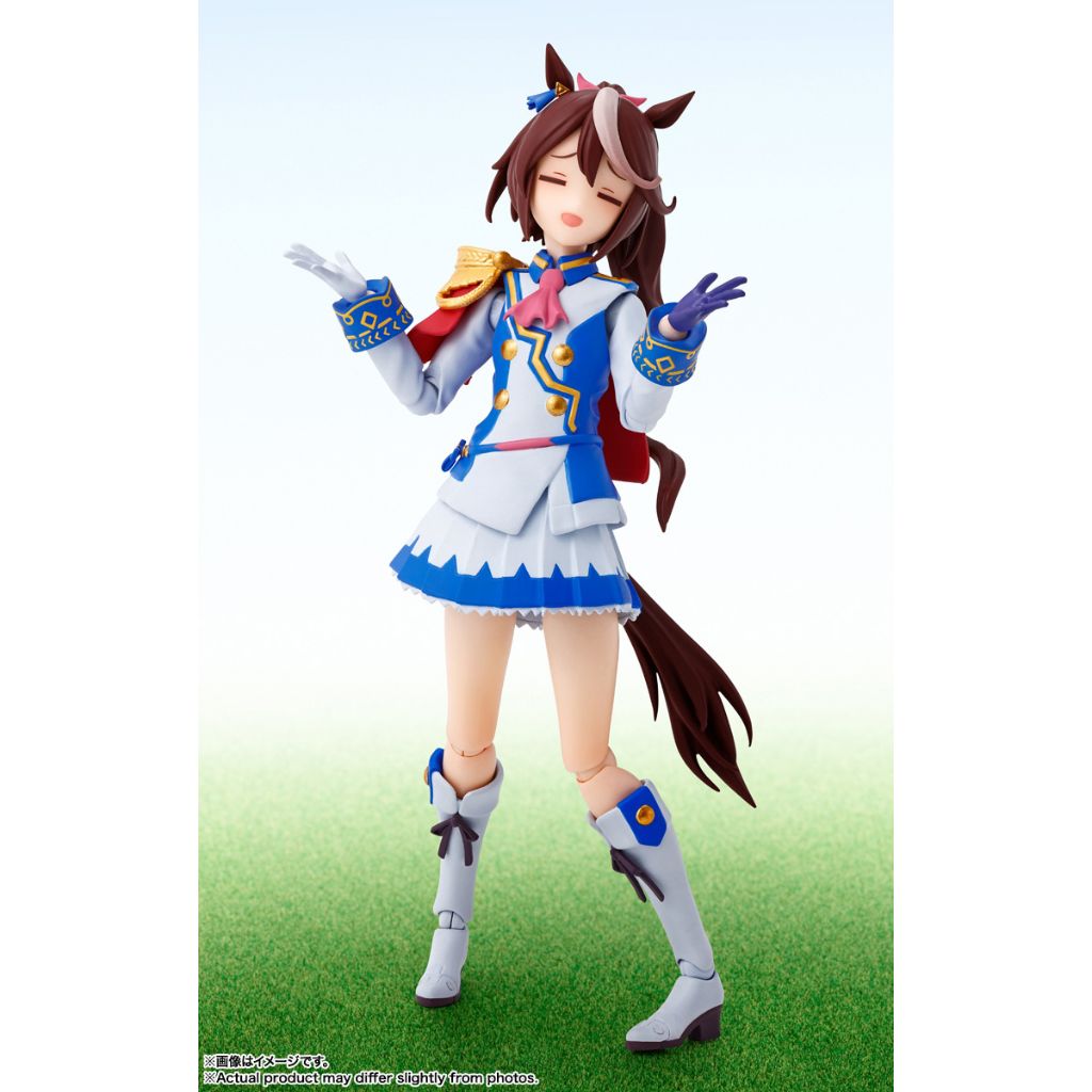 A special edition of Bandai's "S.h.Figuarts" action figure of Tokai Teio is now available! She comes with a base with the "Uma Musume Pretty Derby" logo stamped in golden ink; her characteristic hairstyle and the detailed patterns on her outfit are carefully reproduced! Her skirt is made of a soft material to not compromise action-packed poses, and a variety of interchangeable faces and hands are included too. She can be displayed in a race or in concert -- either way, you'll love her! Order her today!
